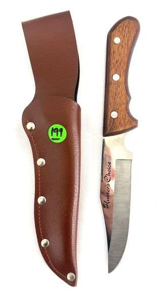 Vintage Hunting Knife and Sheath “Hunter’s Choice” “Mfg. In Japan, the Nat’l Headquarters * USA” item is in new condition. The knife is 10 ¾” long, and the blade is 5 ½”. The matching sheath is vinyl.