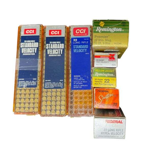 All .22 caliber: long rifle, short rifle, and rim fire. Total of 360 rounds. NO SHIPPING ON AMMUNITION. [JS]