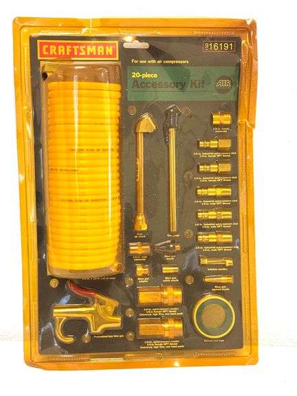 Craftsman 20pc Air Compressor Accessory Set comes brand new in the original package. Never used when purchased.